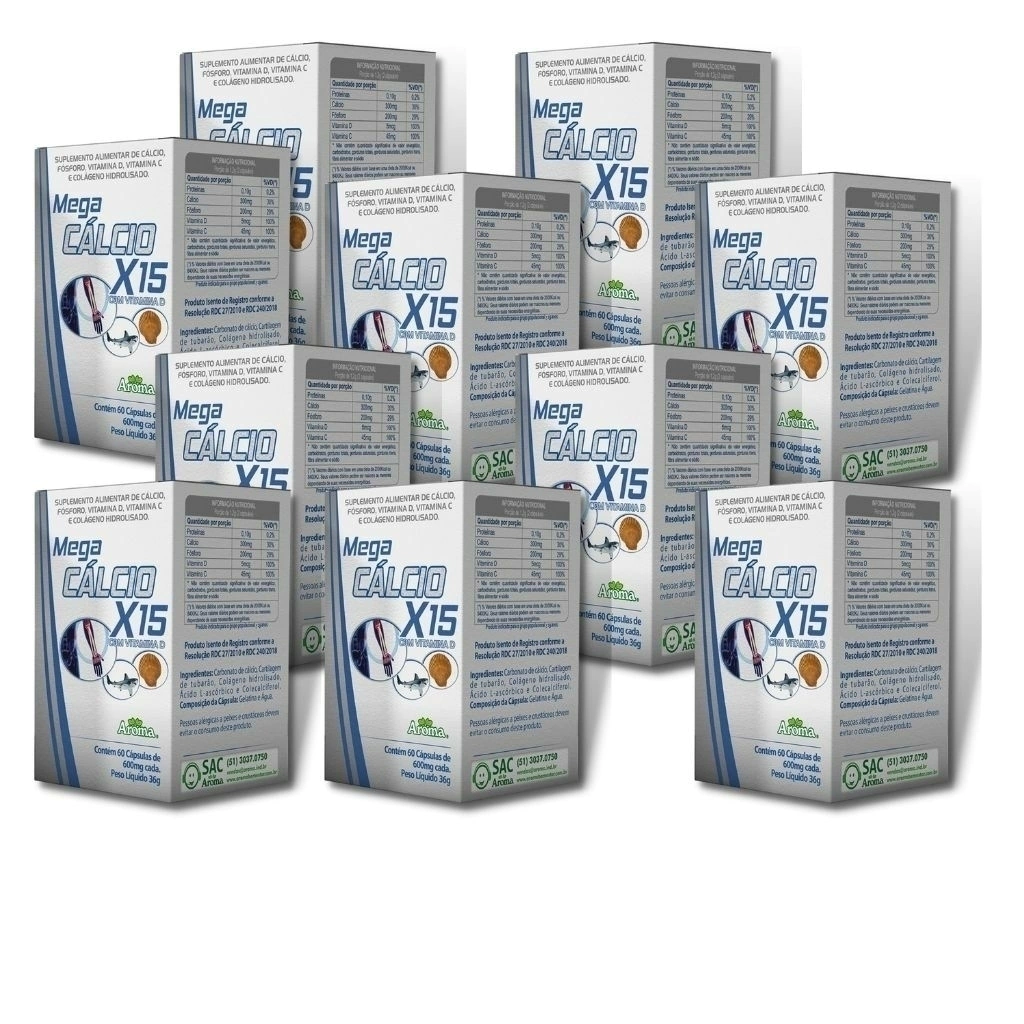 Kit 10x Mega Cálcio X15 | 600 Cápsulas - Suplemento Natural em Cápsulas