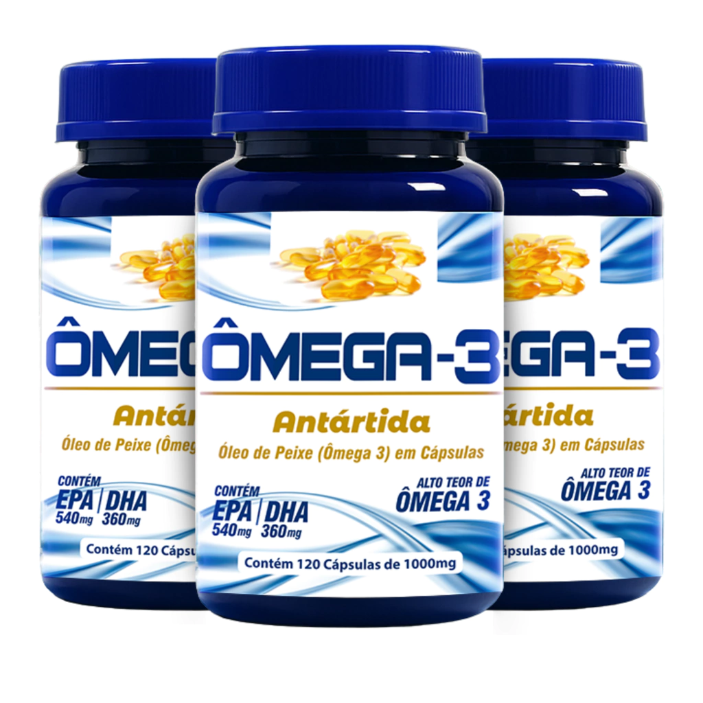 Kit 3x Ômega 3 Antártida 120 Cápsulas (360 Cápsulas) é um suplemento de óleo de peixe de alta pureza, obtido de águas geladas e profundas da Antártida. Rico em EPA e DHA, auxilia na manutenção da saúde cardiovascular, cerebral e articular com máxima absorção e qualidade.